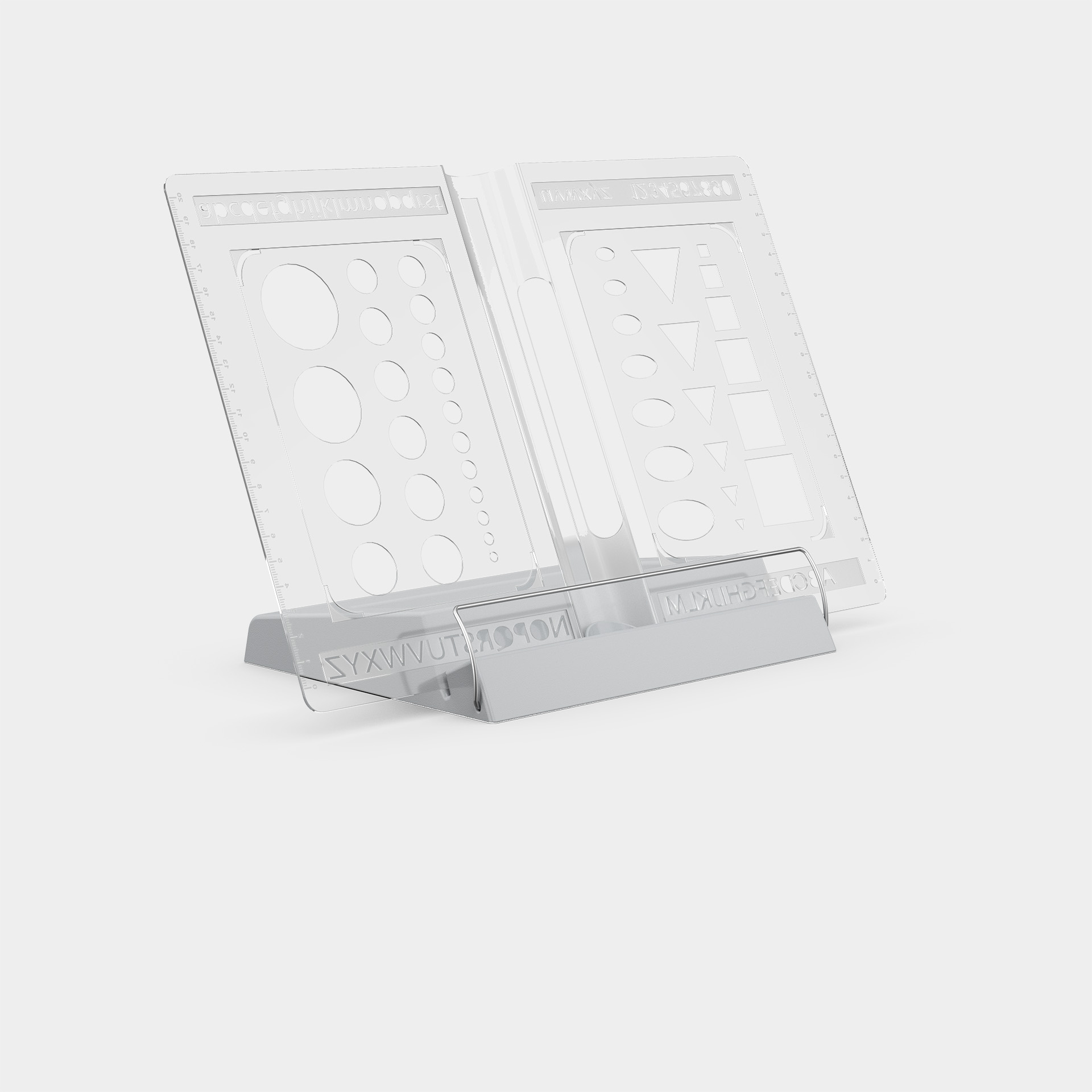 Buchstütze, Stundenplanhalter, Schablone und Leselupe vereint.